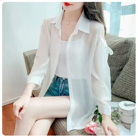 熱賣露肩長袖雪紡襯衫(白色 尺碼:S-3XL)(下單後請聯絡客服確認發貨尺碼)