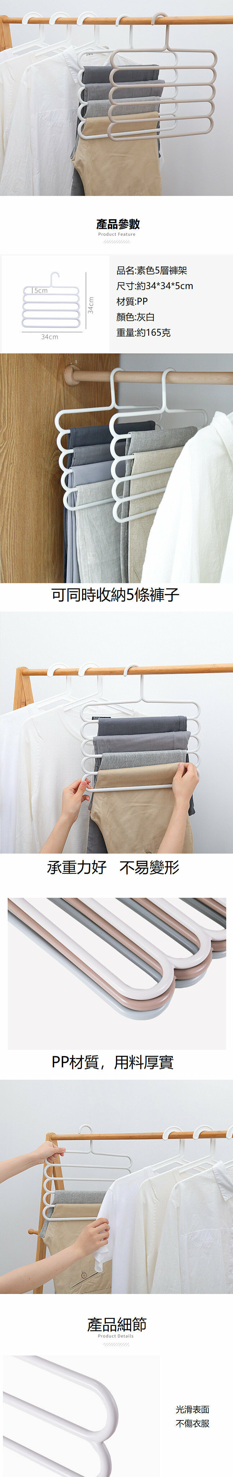 爆款[灰白/5層] (單個裝) 多功能多層無痕掛衣架 褲子圍巾衣服收納神器
