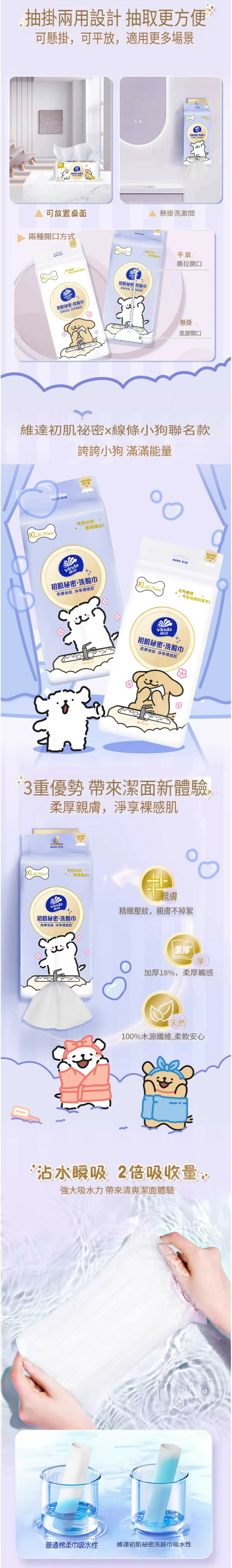 (新舊包裝隨機發貨)維達小狗懸掛式洗臉巾一次性非棉柔巾潔面巾【吾皇IP-體驗裝】60抽x3提