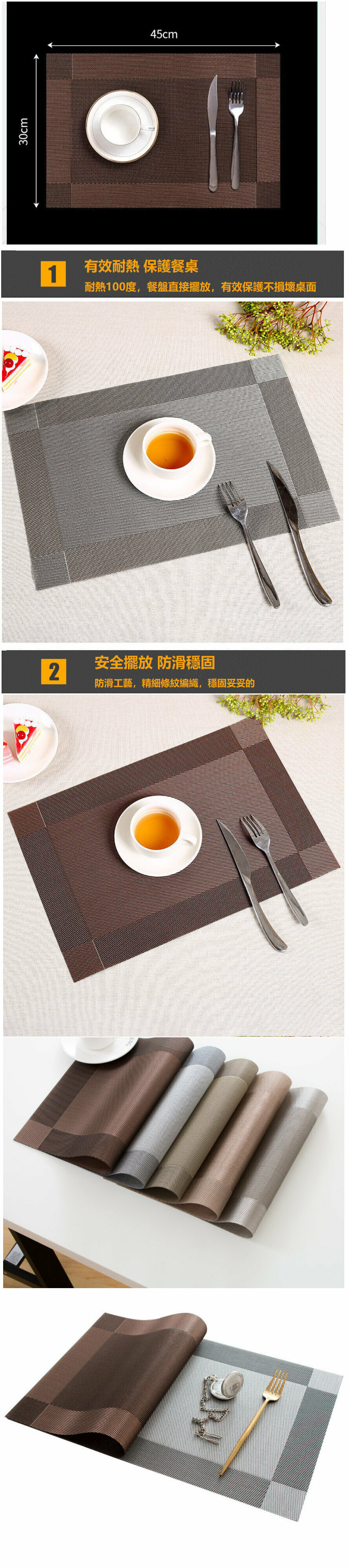 爆款[一個裝]歐式PVC隔熱免洗環保餐墊(顏色對角灰色 規格30x45cm)