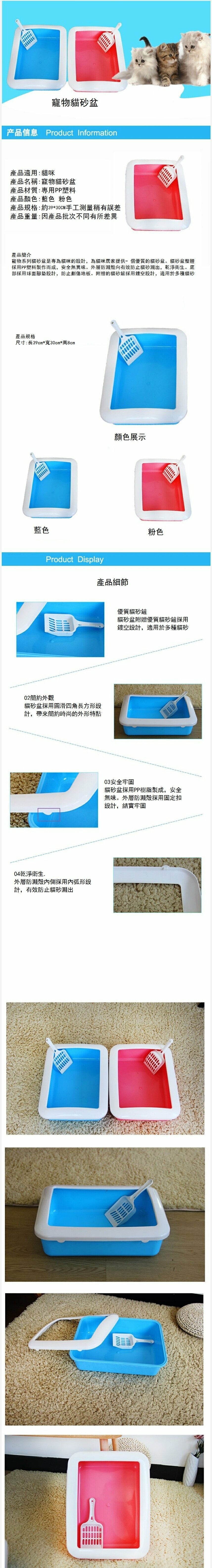 新款開放式貓砂盆(藍色 尺寸:長39cm*寬30cm*高8cm)