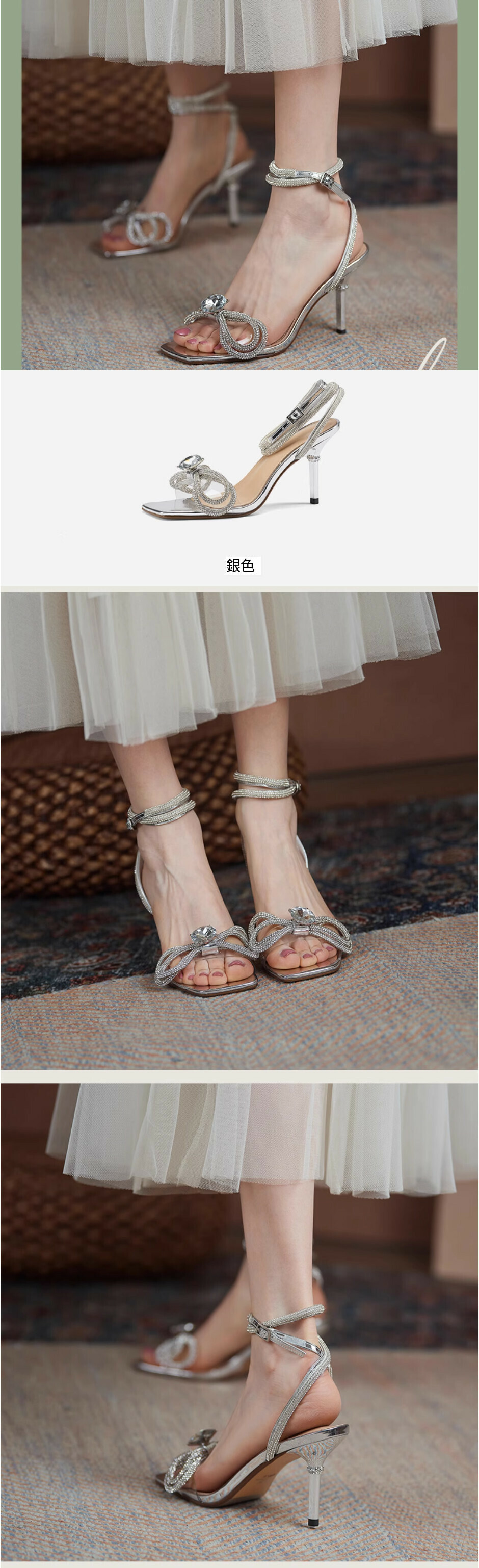 露趾一字帶高跟涼鞋