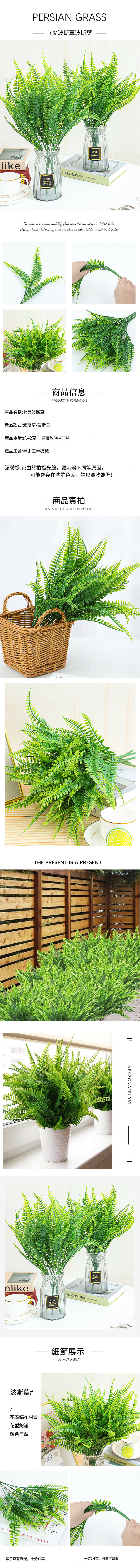 熱推戶外假花綠葉門廊花園裝飾【七叉波斯草】