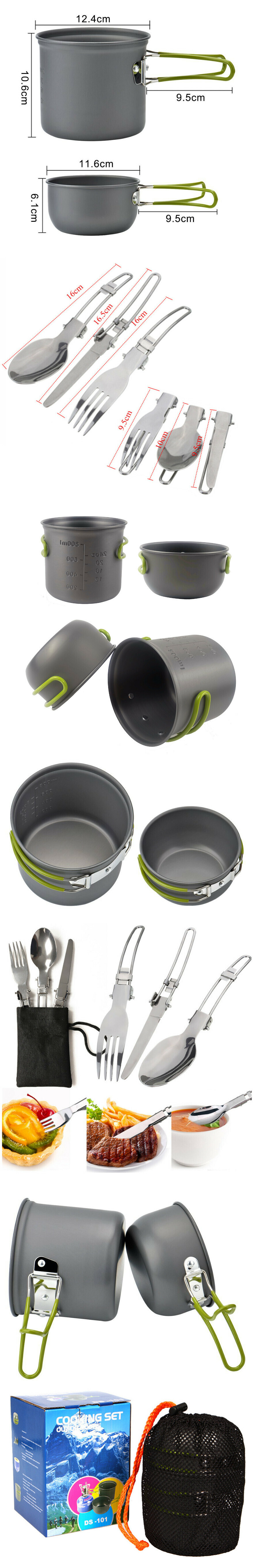 新款戶外野營炊具帶餐具(綠色(彩盒))