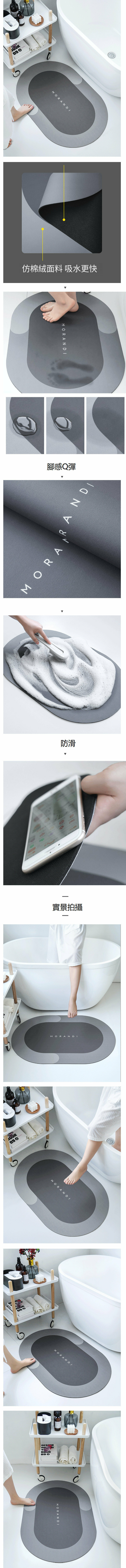 新款[橢圓/高級灰] 珪藻土吸水軟地墊 / 軟式矽藻土 / 吸水防滑地墊腳墊