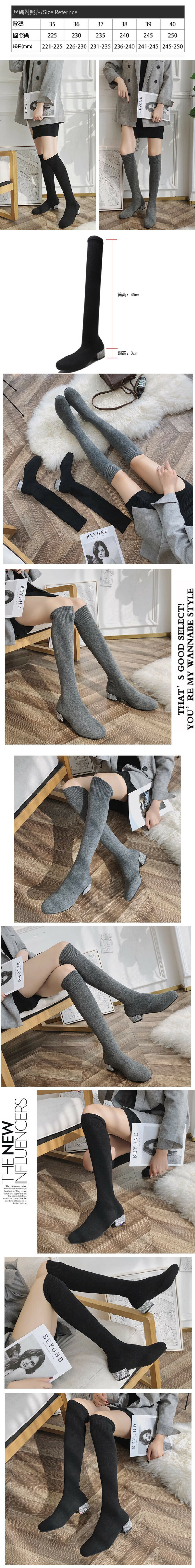 過膝針織彈力襪子靴