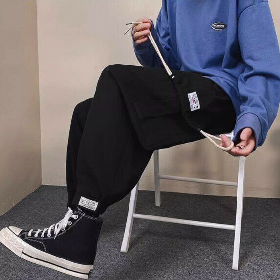 新款工裝九分褲男秋季(黑色【M_5XL碼】(下單後聯繫客服確認發貨尺碼)