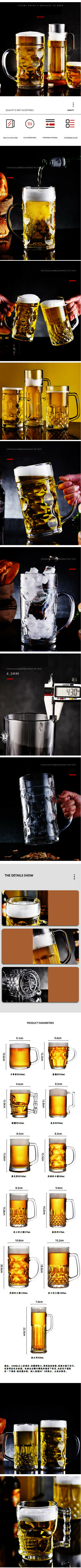 新款超大玻璃水杯帶把手大號啤酒杯(規格:1300ml英雄杯)