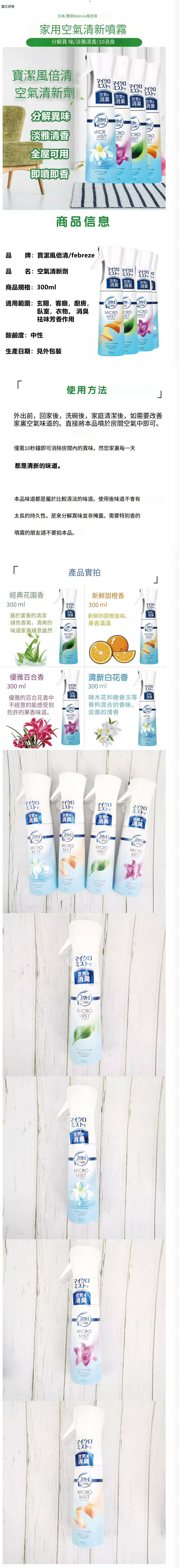 P&G/寶潔--febreze家用臥室客廳廁所汽車空氣清新劑【經典花園香】300mlx1瓶裝