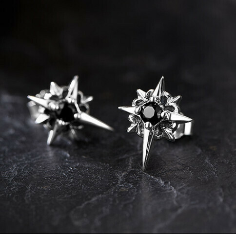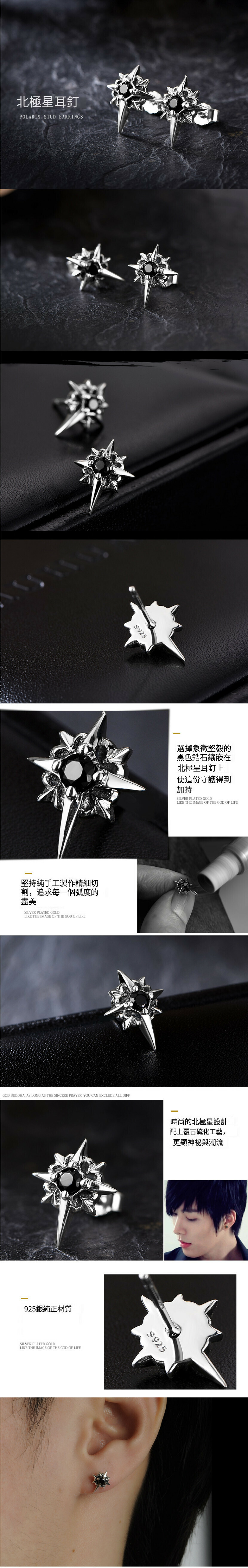 爆款(一對)冷淡風北極星耳環【黑鑽】