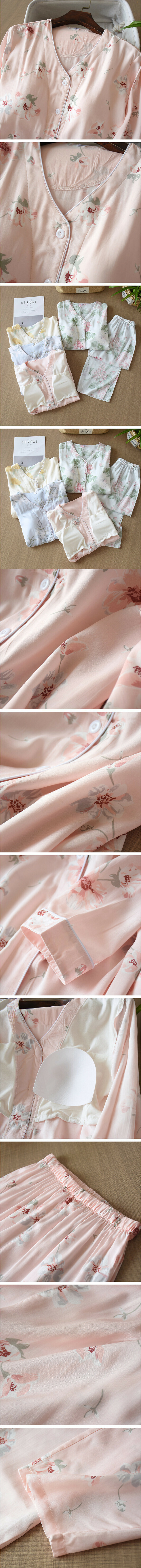 熱推帶胸墊長袖長褲睡衣套裝(粉玉蘭)【M-XL碼】【下單後聯絡客服確認發貨尺碼】