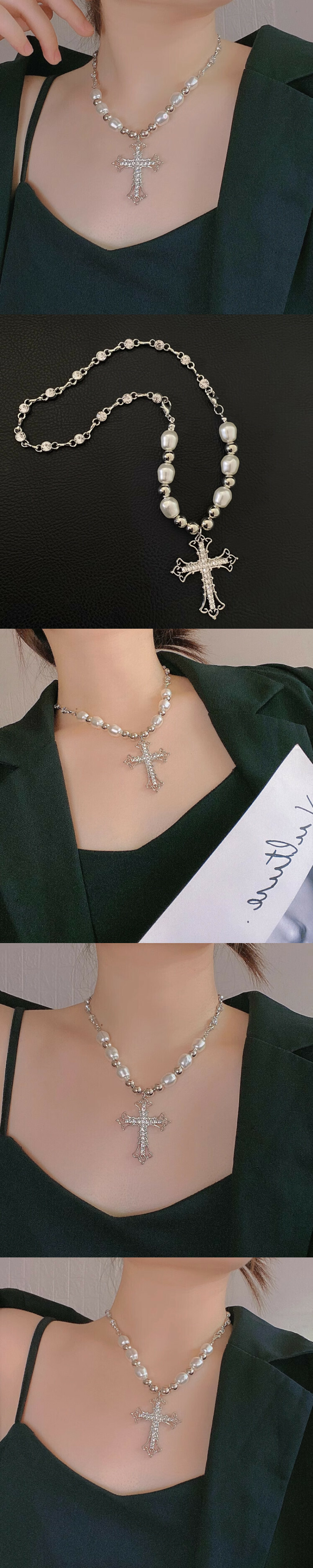 珍珠十字架吊墜頸鏈