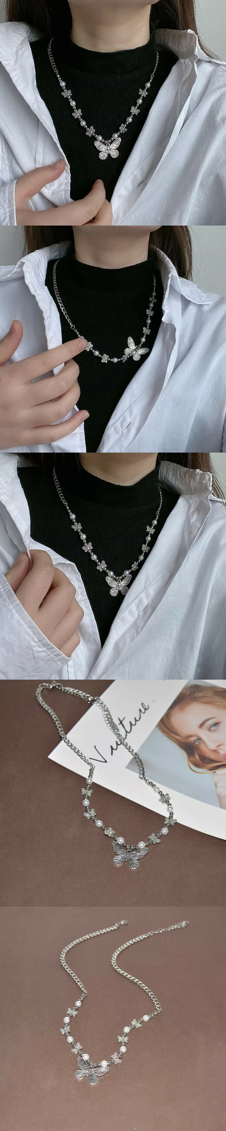 珍珠金屬鏈拼接蝴蝶頸鏈