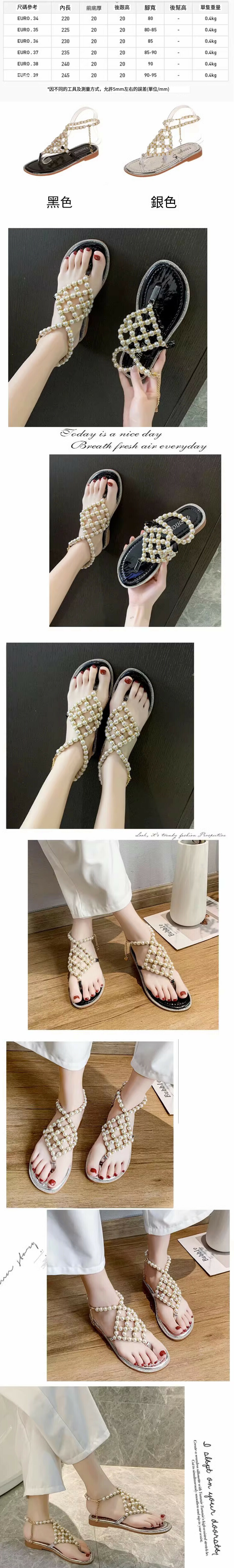 珍珠水鑽夾腳涼鞋