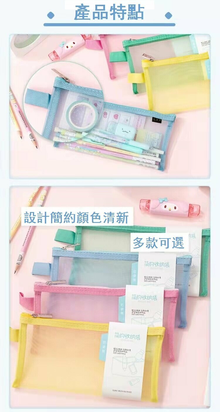 熱推筆袋-簡約輕便網紗收納袋Pencil Bag(1個)(粉紅色)
