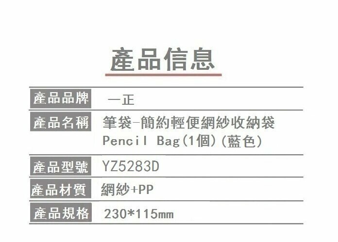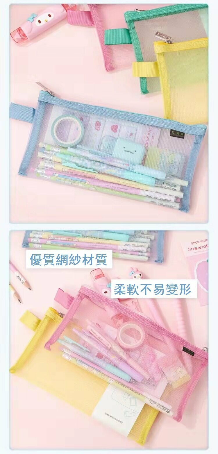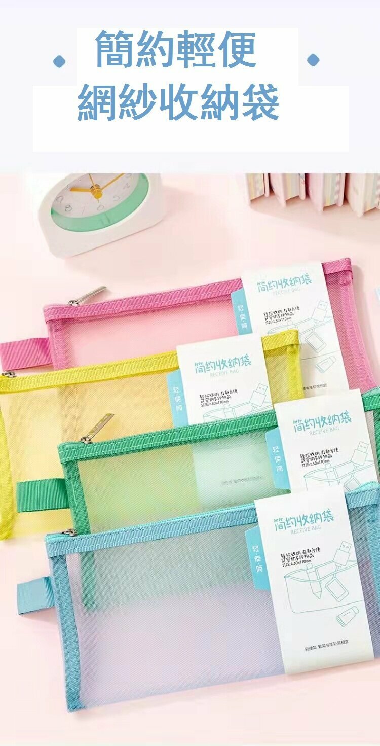熱推筆袋-簡約輕便網紗收納袋Pencil Bag(1個)(藍色)