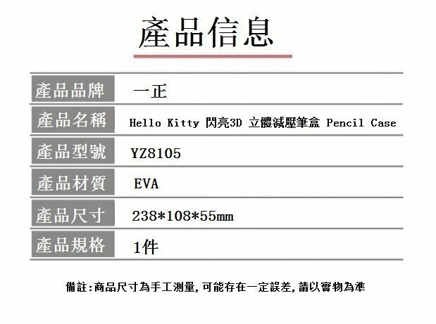 熱推筆袋-Hello Kitty 閃亮3D 立體減壓筆盒 Pencil Case (1件)(B款)