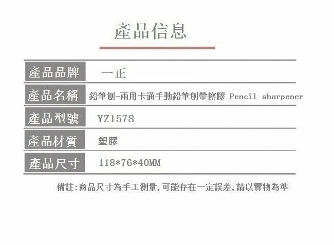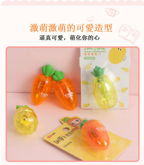 熱賣鉛筆刨-兩用卡通手動鉛筆刨帶擦膠 Pencil sharpener(1件)(胡蘿蔔-黃卡紙)