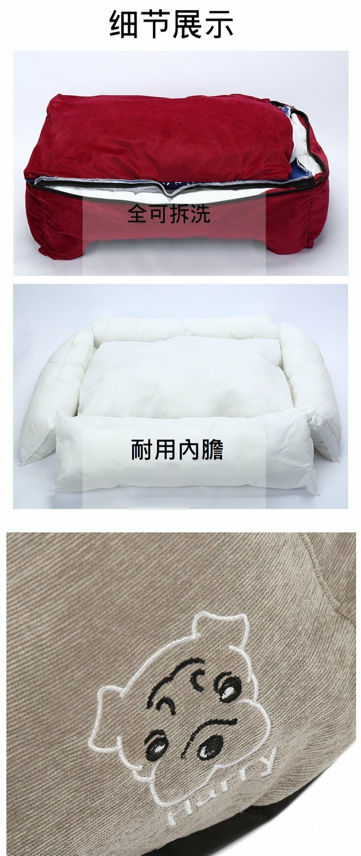 熱推寵物床-可拆洗方形貓窩狗床(咖啡色)(50*40*17cm)