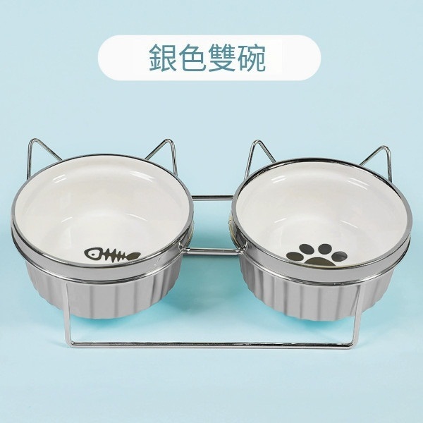 寵物陶瓷雙碗食盆【鍍銀陶瓷雙碗】