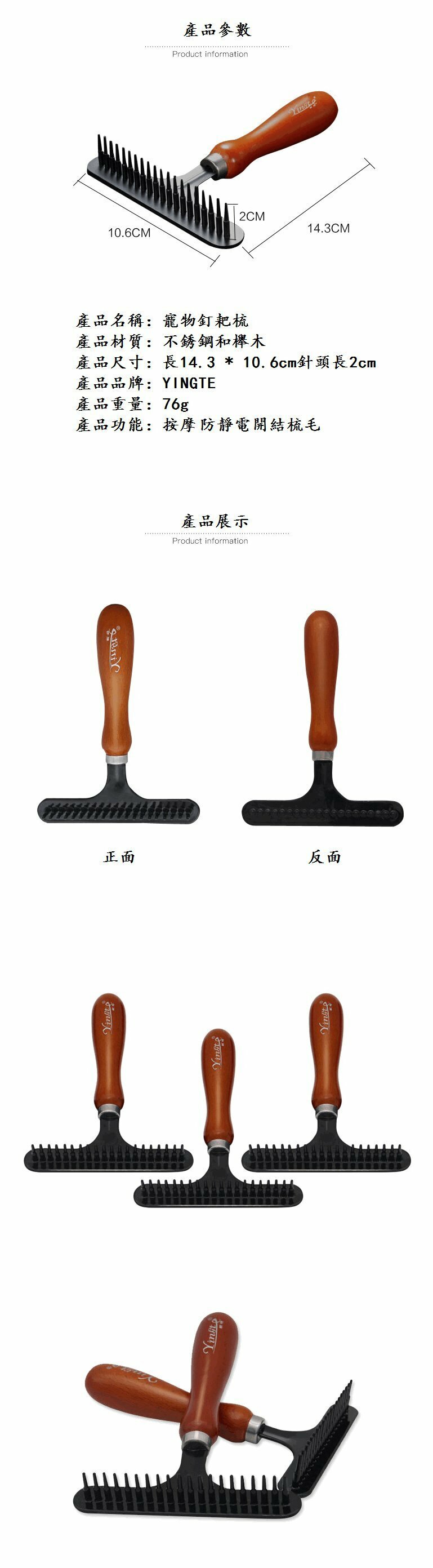 激抵寵物梳-狗狗清潔美容梳子實木手柄(釘耙梳)
