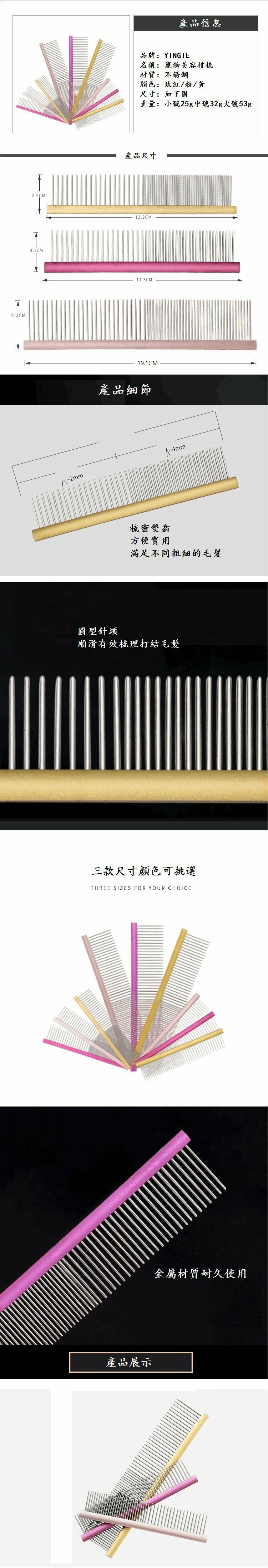 激抵寵物梳-寵物造型美容開結排梳(中號-金色 長14.3cm)
