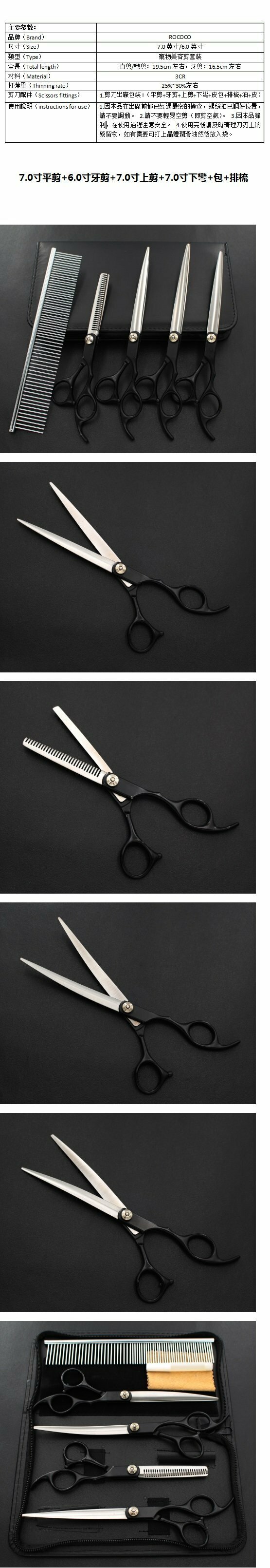 熱賣寵物美容剪刀套裝(7.0寸黑色4把裝+皮包+排梳)