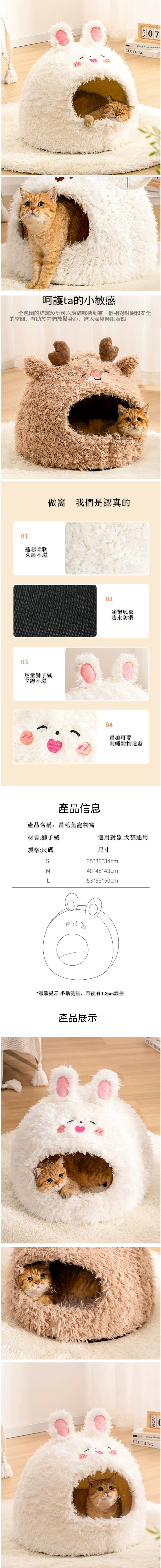 寵物屋半封閉式窩【粉耳毛絨小兔-奶白色】L-大型