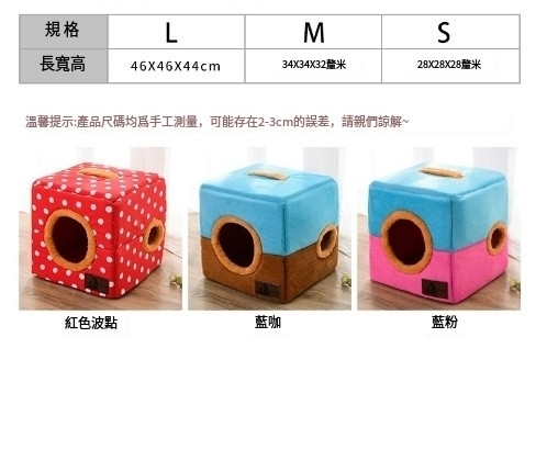 熱推寵物窩-可折疊骰子雙洞寵物窩貓窩狗窩 (啡+藍)
