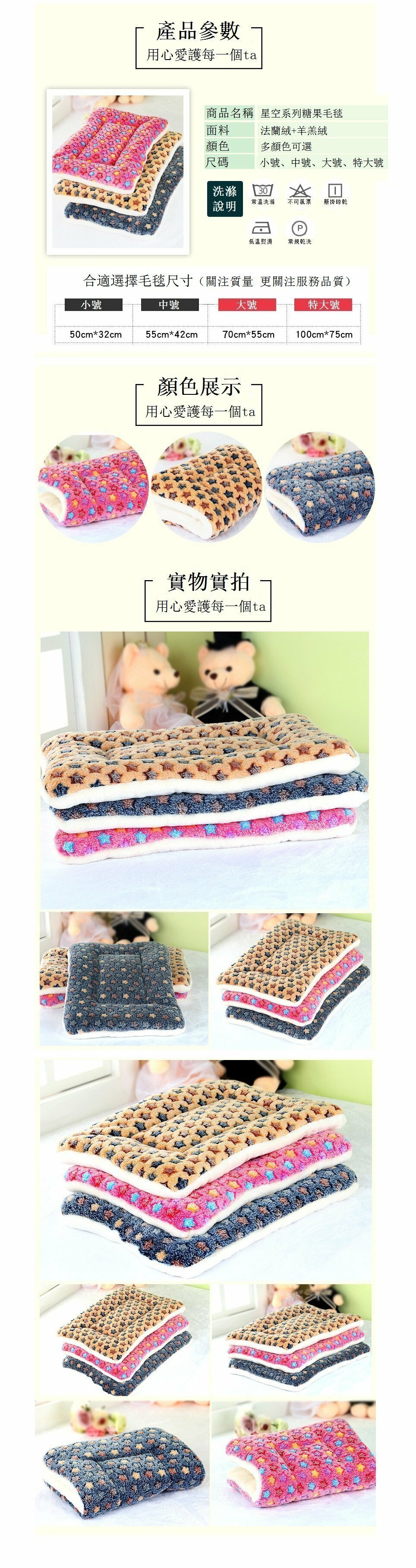 激抵寵物墊-Q版圖案厚身保暖寵物毛氈床墊S碼(星空粉色)