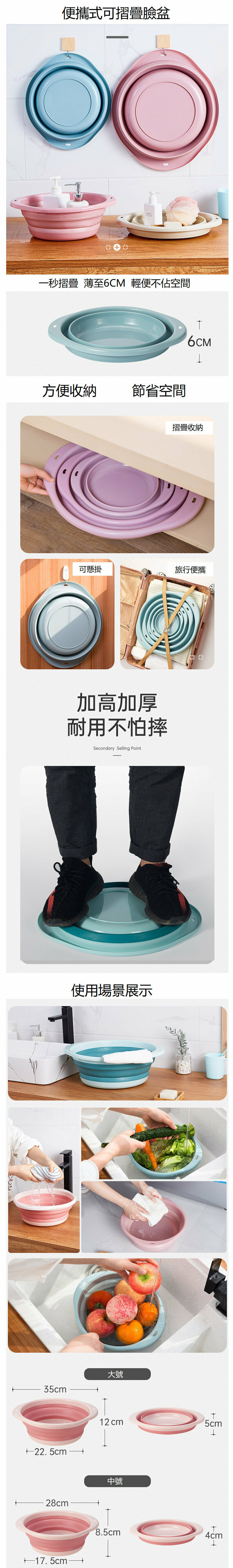 新款[粉紅色/中號] 可摺疊洗面盆
