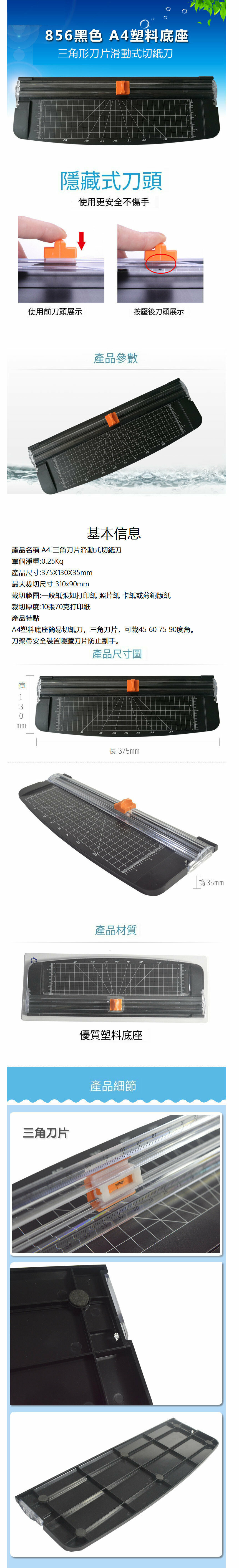 熱推塑膠底座裁紙刀 裁紙機 切紙機 家用式滑動裁紙器【856A4黑】