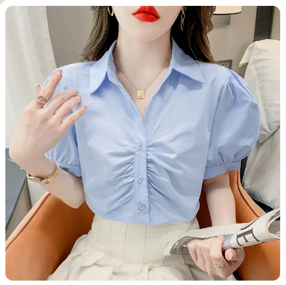 熱賣褶皺泡泡短袖襯衫(藍色 尺碼:S-3XL)(下單後請聯絡客服確認發貨尺碼)
