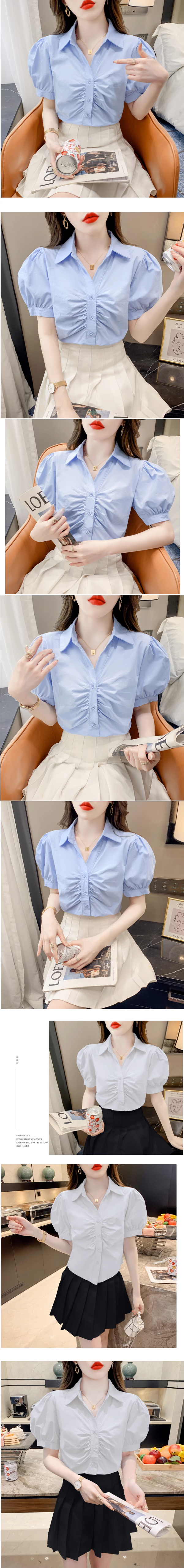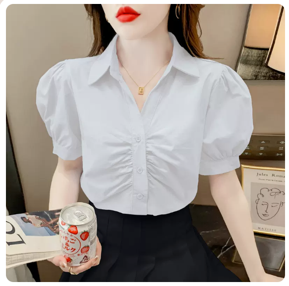 熱賣褶皺泡泡短袖襯衫(白色 尺碼:S-3XL)(下單後請聯絡客服確認發貨尺碼)