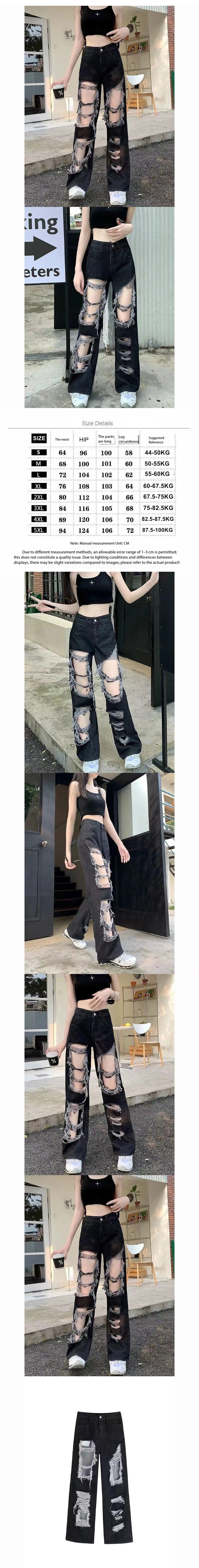 大碼胖mm高腰破洞牛仔褲女夏季寬鬆闊腿褲