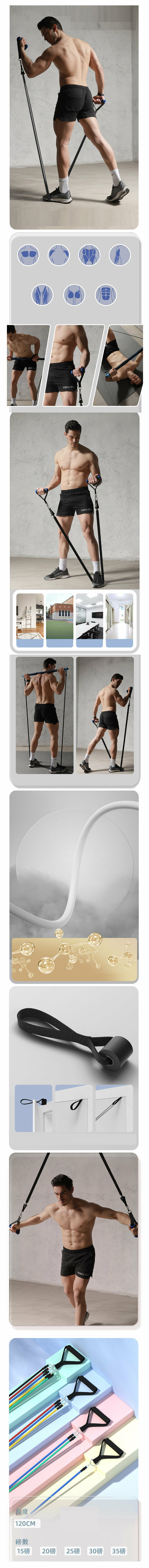 爆款【14件套】拉力繩力量胸肌訓練器材【推拉桿+ 【防斷175磅】約13-158磅拉力自由搭配】