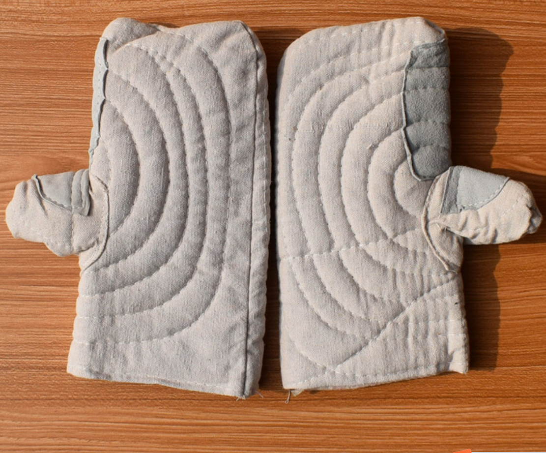 爆款2只帆布耐高溫隔熱厚夾棉手套(白甲布)(尺寸:長35CM)