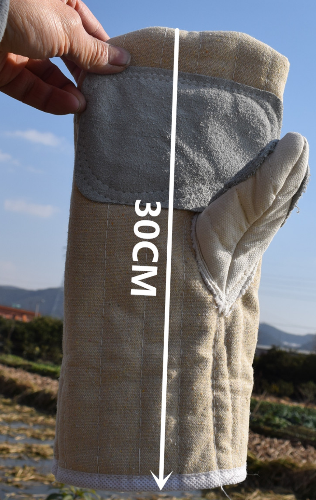 爆款2只帆布夾棉加皮耐高溫隔熱手套(尺寸:長30CM)