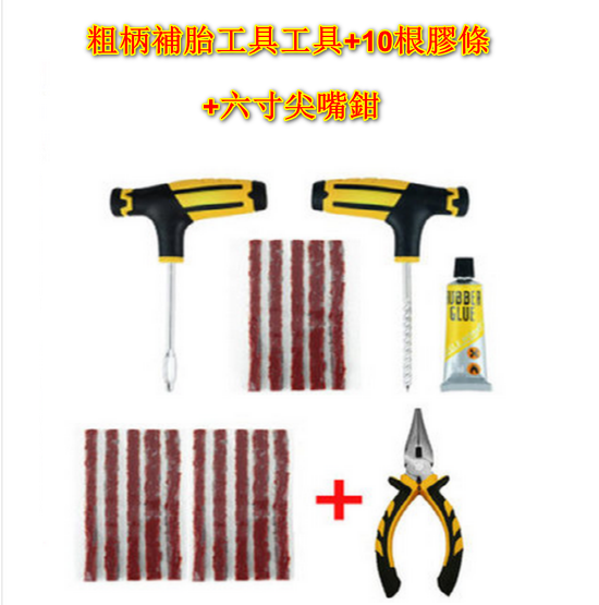 爆款【3組混合裝】汽車粗柄補胎工具套裝(粗柄補胎工具套裝含5根膠條+10條膠條+尖嘴鉗)