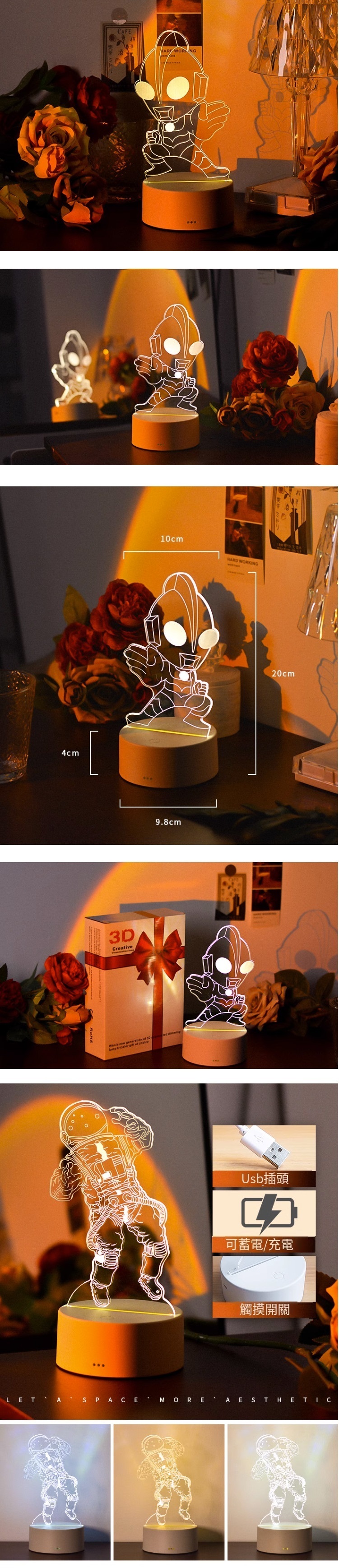 爆款3d小夜燈臥室氛圍感(【充電款三色+USB插頭】福牛)