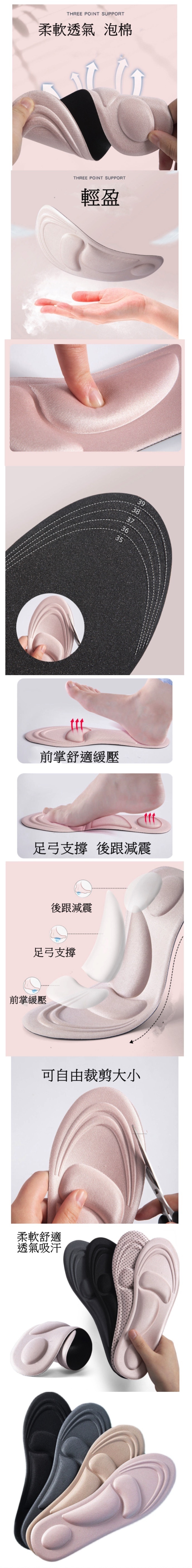 爆款4D超軟加厚前掌墊防痛防臭減震鞋墊(黑色-1對裝)40-44碼-可自由裁剪大小