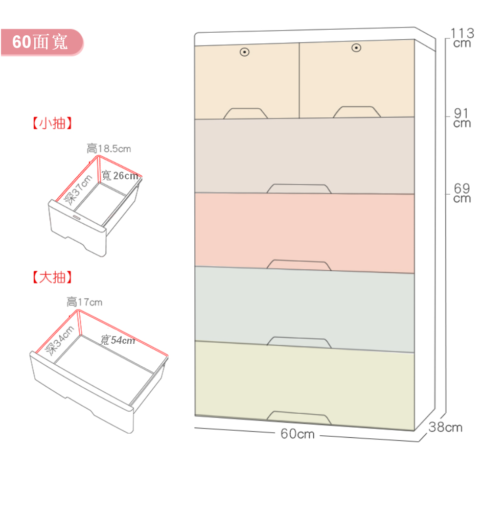 爆款【6層】60面寬加大加厚抽屜式儲物櫃(馬卡龍)
