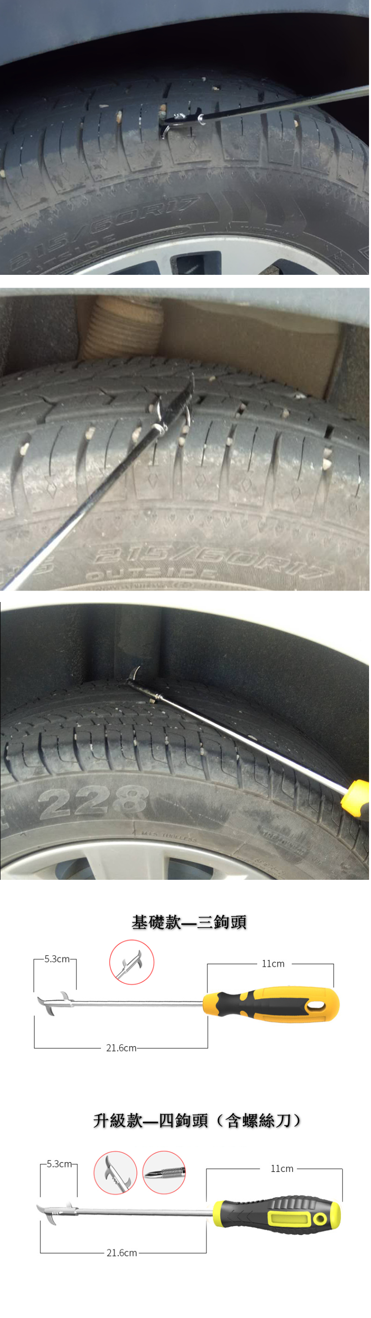爆款【6件裝】汽車輪胎石子清理工具(基礎款 三鉤頭+備用鉤+4粒氣帽)