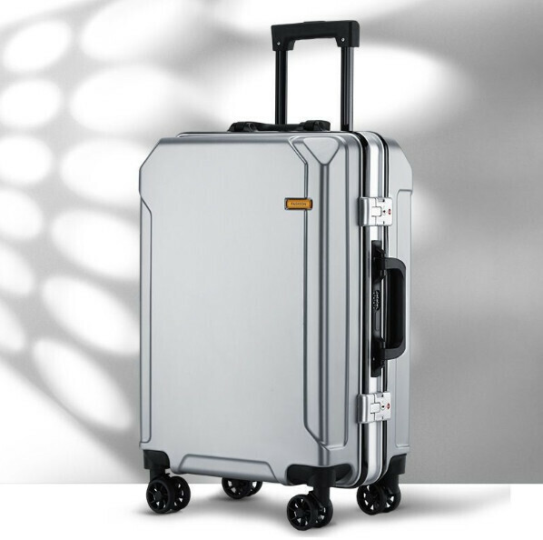 爆款鋁框拉杆行李箱【26寸】【銀框-米白色】