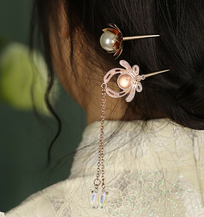 爆款古風純手工合金流蘇髮簪(金蓮)(尺寸:簪長13.5cm)