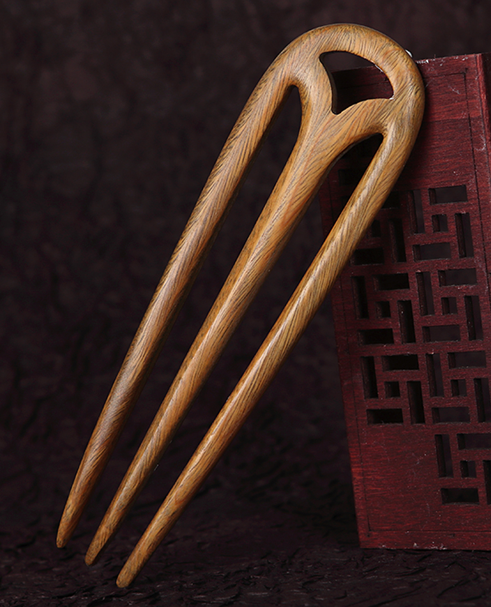 爆款古風簡約檀木三叉髮髻(綠檀)(尺寸:長12cm寬3cm)