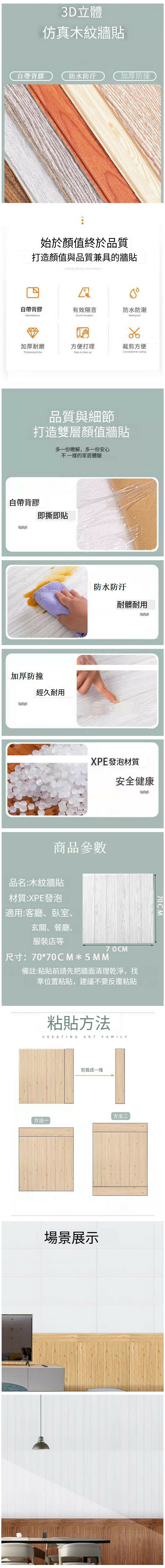爆款防撞泡沫防水防潮自粘3d墻貼紙木紋墻紙【混色淺黃色】【70*70cm*5mm】