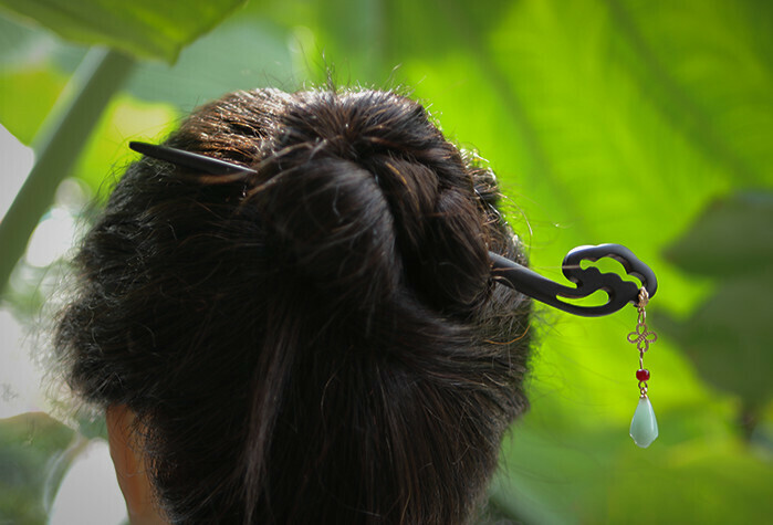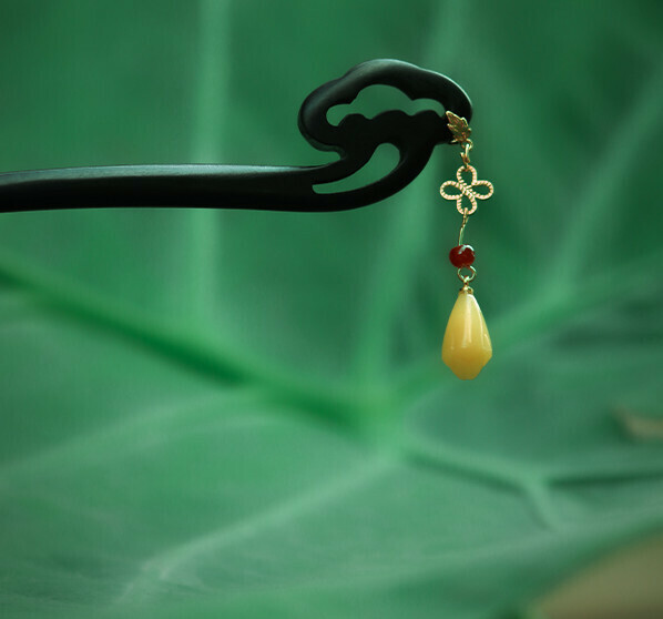 爆款古風吊墜挽發黑檀木髮簪(玉蘭)(尺寸:簪長18cm)