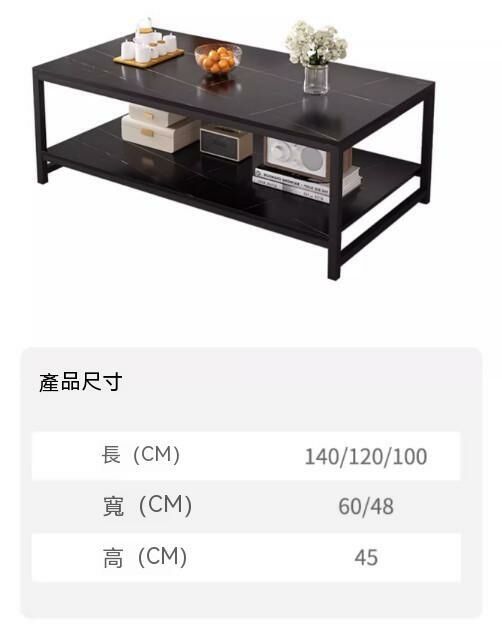爆款人造板小戶型簡約茶几(黑石紋+雙層)【尺寸:140*60*45cm】