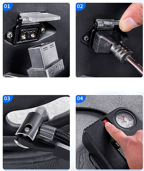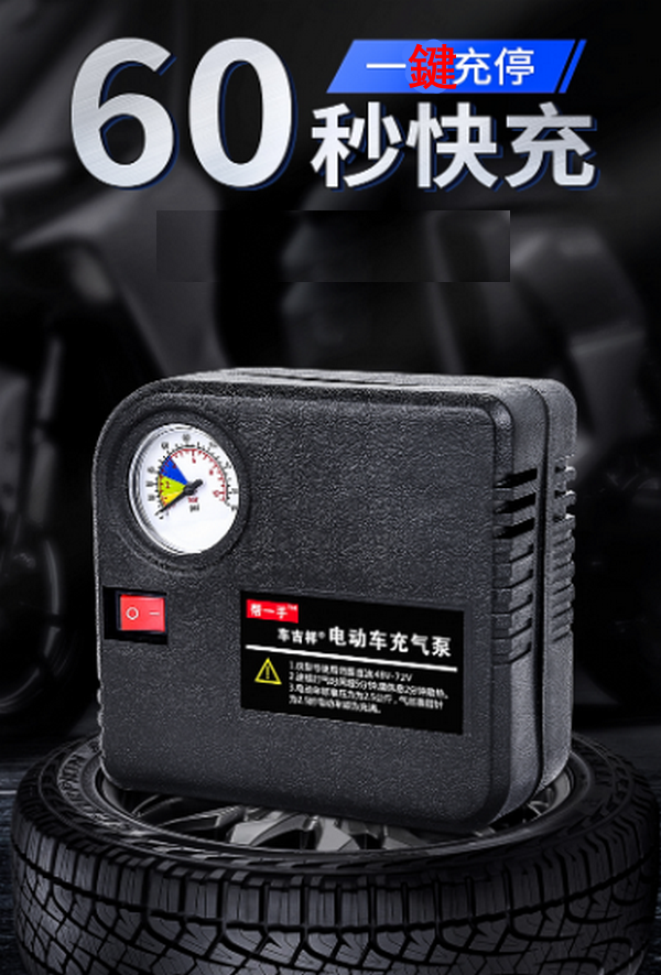 爆款自動測壓車載充氣泵-3米加長線【48-72V支持所有胎】+送多種氣嘴+補胎工具